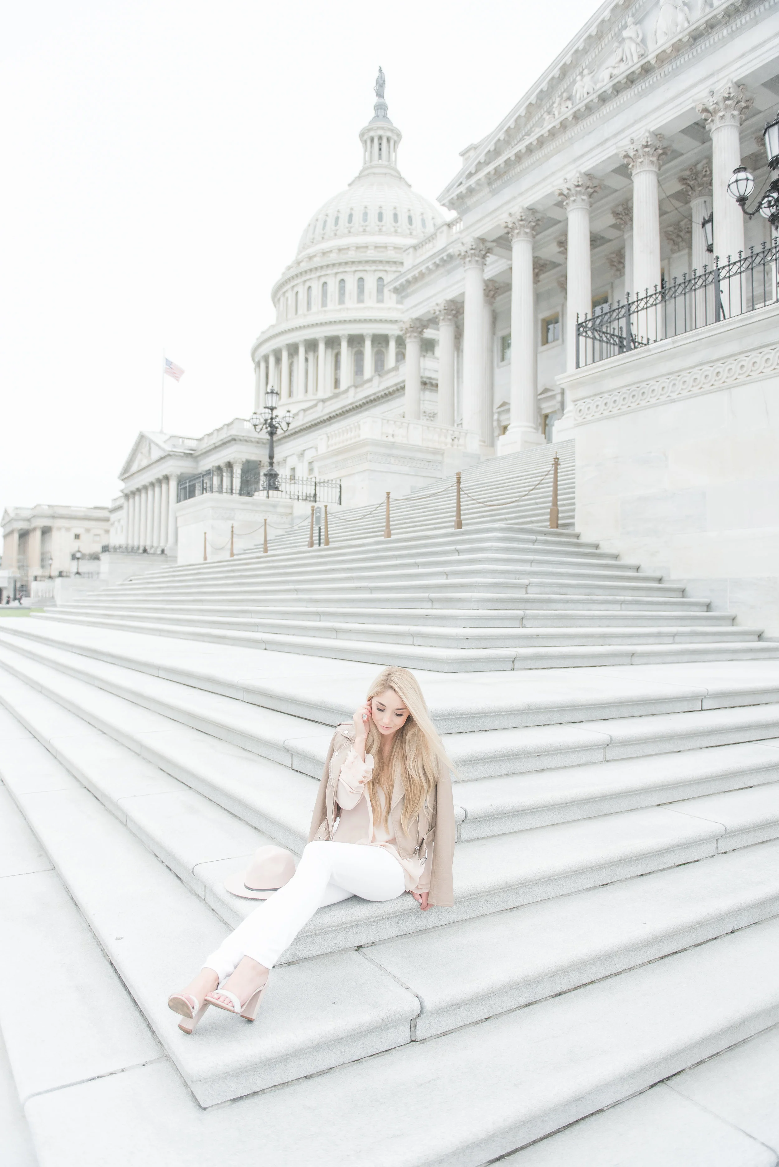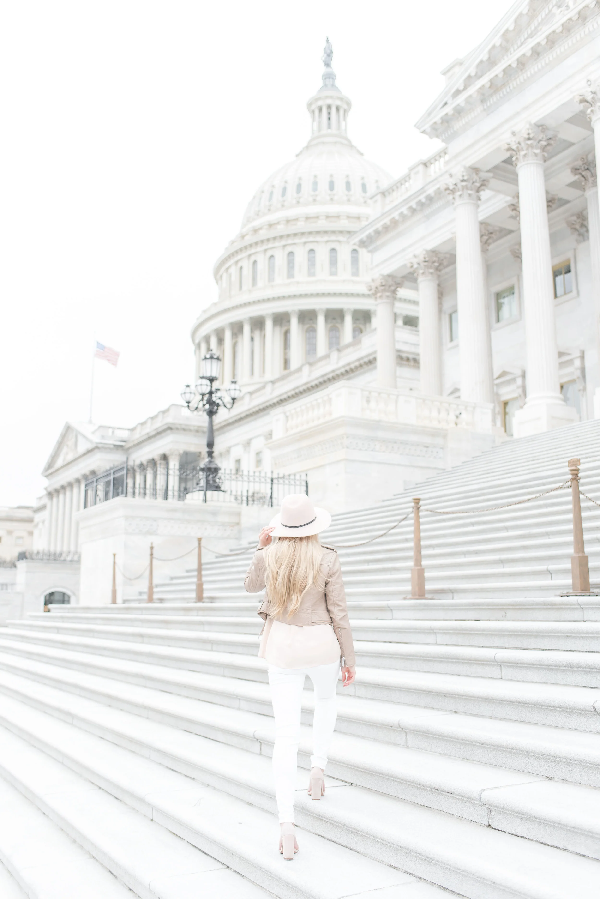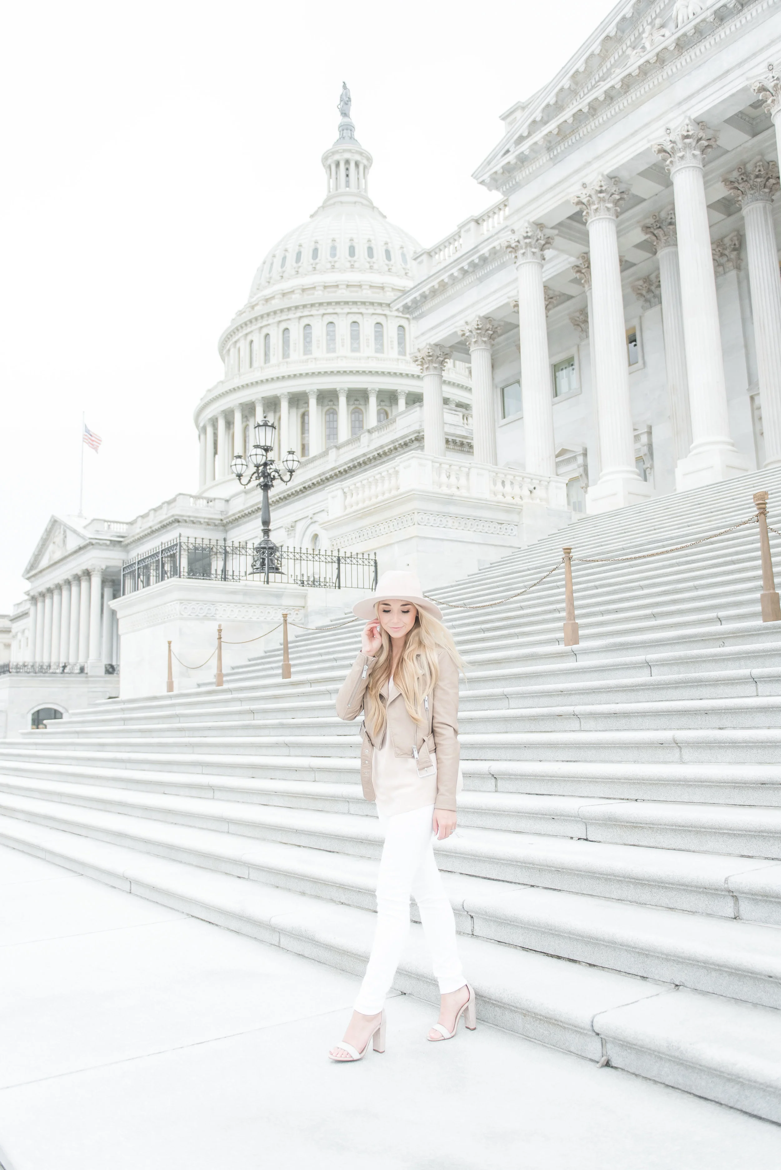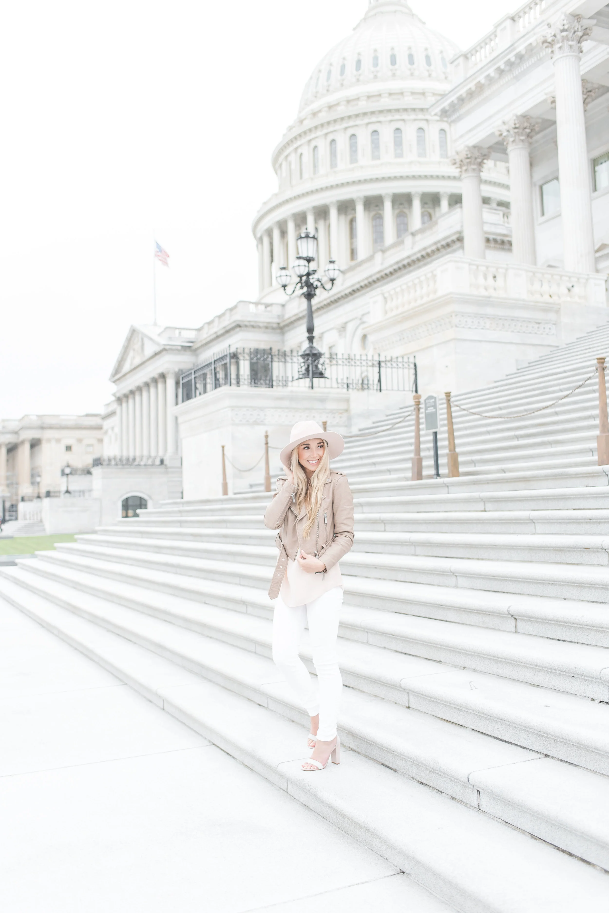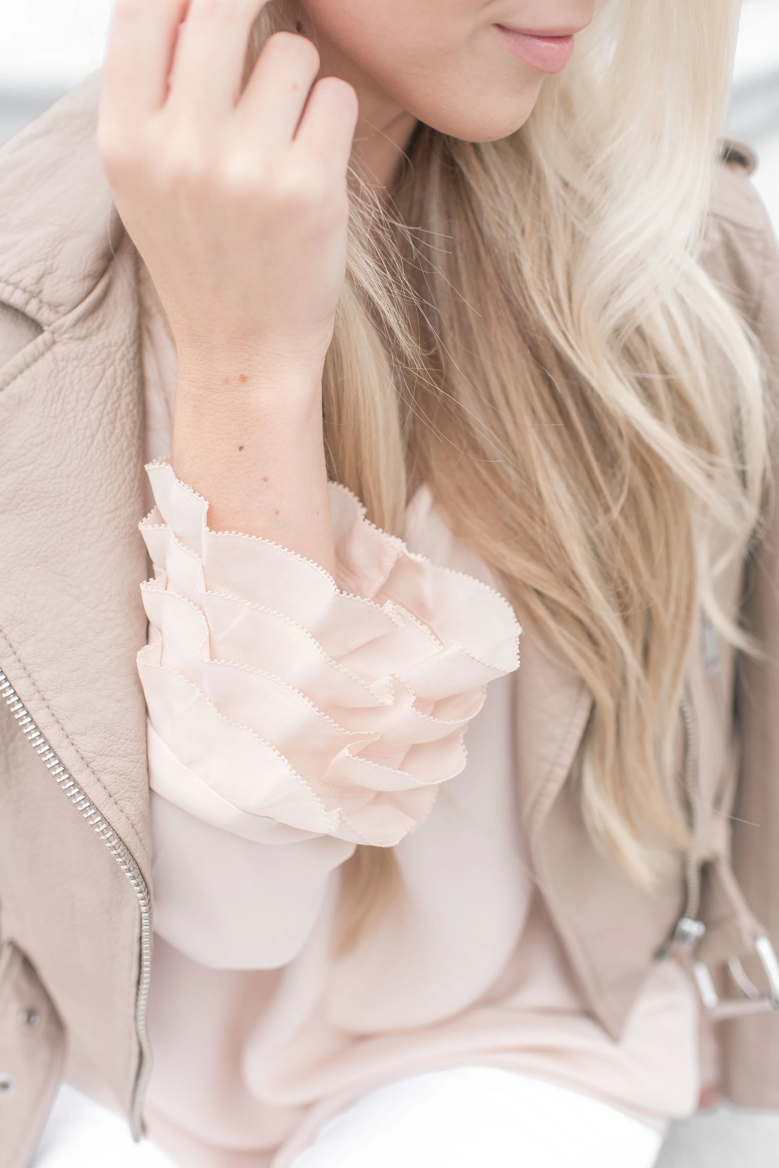 When we traveled to DC a few weekends back (see here), I styled this gorgeous faux-leather jacket and muted pink ruffled blouse by Sassanova. Sassanova is located in the heart of Harbor East, and they have some of my favorite items trending right now like this light moto jacket.