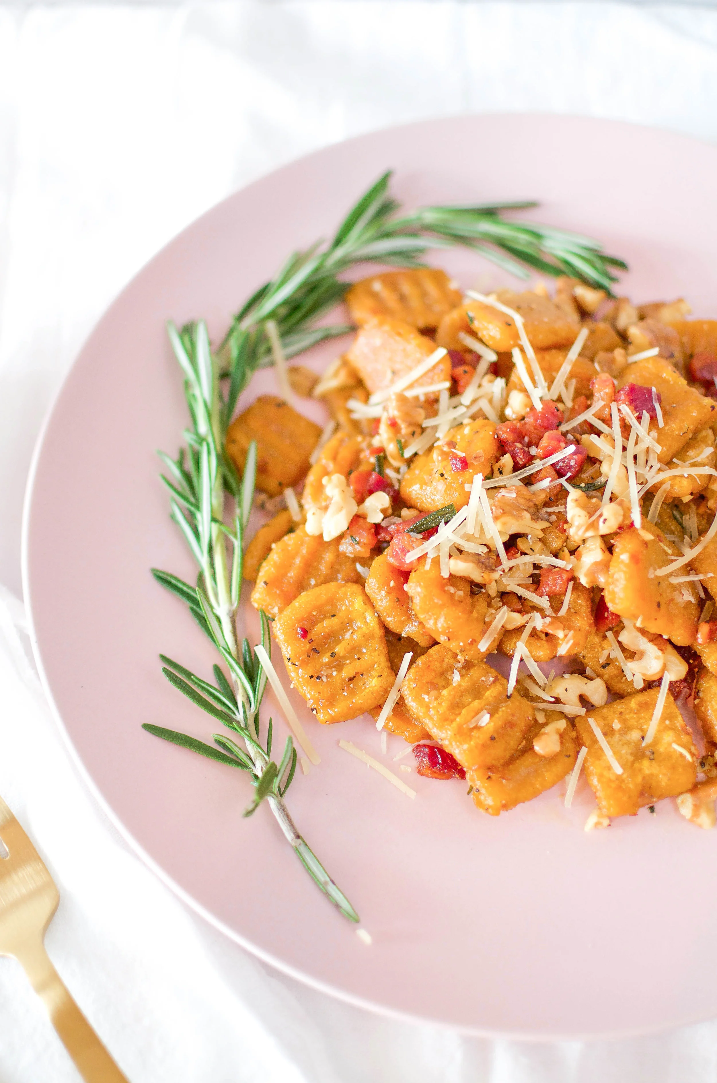 Gluten-Free Pumpkin Ricotta Gnocchi with Pancetta and Toasted Walnuts